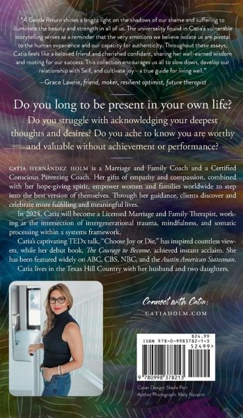 Do you long to be present in your own life? Do you struggle with acknowledging your deepest thoughts and desires? Do you ache to know you are worthy and valuable without achievement or performance? In a harsh world that pressures women to conform and comply, A Gentle Return is a beacon of clarity and wisdom for women who seek to embrace their wholeness and feel grounded and liberated. Catia Hernandez Holm, Marriage and Family Coach, Certified Parenting Coach, clinician and bestselling author, uses her brave revelations to take the reader on a revealing, heartfelt journey through the complexities of womanhood, rooted in social, cultural, and gendered conditioning. This bold memoir explores the shared life experiences that uniquely connect women as each begins her gentle return to their divine femininity and authentic power through self-compassion, grace, and understanding. Relatable stories and timeless truths will leave the reader feeling seen, heard, and valued in a way never thought possible.