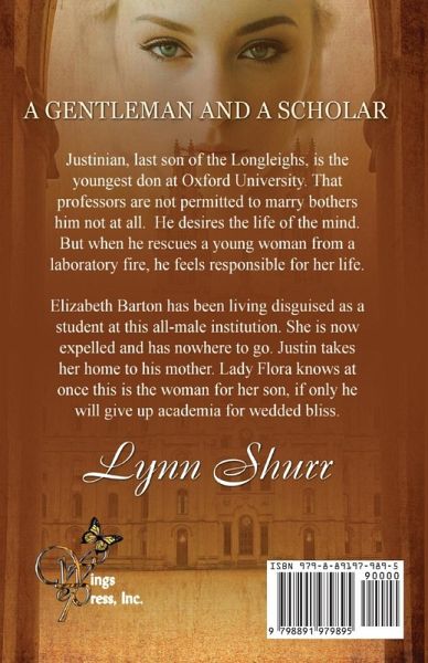 Justinian Longleigh, youngest son of the Duke and Duchess of Bellevue, has achieved his dream of becoming the youngest don at Oxford University. That the professors are not allowed to marry bothers him not at all. He desires to live the life of the mind, not of the flesh. However, when he rescues a young woman from a laboratory fire, he feels responsible for her life. Elizabeth Barton has been living disguised as a student at the all-male institution for years learning all manner of things, but none useful for a young woman. Having just blown up her second laboratory, the chancellor will no longer turn a blind eye and orders her to leave and never return. She has nowhere to go. Justin knows the exact person to help her, his mother, Lady Flora. As soon as they meet, Flora knows this is the woman for her son if only he will give up academia for wedded bliss. She will do all in her power to see them married.