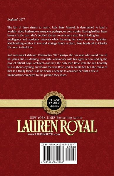 ¿ A duke-crazed debutante ¿ A sexy Royal Architect ¿ A book of naughty poems ¿ A masquerade ball-in the dark ¿ Steamy romance! Another enthralling romance featuring New York Times bestselling author Lauren Royal's "outrageously funny, loyal, compassionate, and unconventional" Chase family! The last of three sisters to marry, Lady Rose Ashcroft is determined to land a wealthy, titled husband-a marquess, perhaps, or even a duke. Having had her heart broken in the past, she's decided the key to enticing a man lies in hiding her intelligence and academic interests while flaunting her more feminine qualities. Matchmaking mother in tow and strategy firmly in place, Rose heads off to Charles II's court to find love... And runs smack dab into Christopher "Kit" Martyn, the one man who could ruin all her plans. Kit is a dashing, successful commoner with his sights set on landing the post of official Royal Architect-and he's the only man Rose feels she can honestly talk to about anything. Kit knows the true Rose, and he wants her, but she thinks of him as a family friend. Can he devise a scheme to convince her that a title is unimportant compared to the passion they share? PLEASE NOTE: This book was formerly titled "Rose." Book Details A complete, standalone story-no cliffhangers! Series: Chase Family Series, Book 7 Style: Humorous historical romance Length: 105,000 words Bonus Material: Author's Note, preview of next book, link to giveaway R-rated Content: Steamy love scenes!* * If you'd prefer to read a Sweet & Clean (kisses only) version of this story, look for "The Gentleman's Scandalous Bride" by Lauren Royal & Devon Royal. Awards Top 10 Bestseller on Amazon and Barnes & Noble Winner of the Golden Quill Award for Best Historical Romance Finalist for the More Than Magic Award Reviews "A captivating historical romance. Fans of Julia Quinn and Tessa Dare will love Lauren Royal!" -Glynnis Campbell, USA Today Bestselling Author "...wonderful...charming and engaging...[Royal] portrays the 17th century and Charles II's colorful reign with a deft hand, filling the pages with the history and atmosphere of the era. Relax, enjoy, and delight in another luscious tale." -Romantic Times "...delightful...Royal vividly details the seductively glamorous court of Charles II." -Booklist (American Library Association) "...full of wit and sensuality, a thoroughly engaging read." -Romance and Friends Connecting Books While A GENTLEMAN'S PLOT TO TIE THE KNOT can be read as a stand-alone novel, many readers enjoy reading it as part of a series. All of Lauren's books feature Chase family members. Should you wish to read them in chronological order, this is the sequence: Chase Family Series When an Earl Meets a Girl How to Undress a Marquess If You Dared to Love a Laird A Duke's Guide to Seducing His Bride Never Doubt a Viscount The Scandal of Lord Randal A Gentleman's Plot to Tie the Knot A Secret Christmas A Chase Family Christmas Chase Family Series: The Regency Tempt Me at Midnight Tempting Juliana The Art of Temptation