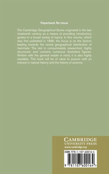 The Cambridge Geographical Series originated in the late nineteenth century as a means of providing introductory guides to a broad variety of topics. In this volume, which was first published in 1896, the focus is on the factors leading towards the varied geographical distribution of mammals. The text is consummately researched, highly structured, and contains numerous illustrative figures. Written with the general reader in mind, it is also highly readable. This book will be of value to anyone with an interest in natural history and the history of science.