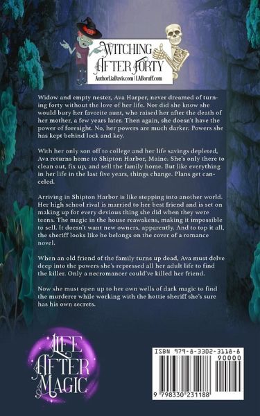 Widow and empty nester, Ava Harper, never dreamed of turning forty without the love of her life. Nor did she know she would bury her favorite aunt, who raised her after the death of her mother, a few years later. Then again, she doesn't have the power of foresight. No, her powers are much darker. Powers she has kept behind lock and key. With her only son off to college and her life savings depleted, Ava returns home to Shipton Harbor, Maine. She's only there to clean out, fix up, and sell the family home. But like everything in her life in the last five years, things change. Plans get canceled. Arriving in Shipton Harbor is like stepping into another world. Her high school rival is married to her best friend and is set on making up for every devious thing she did when they were teens. The magic in the house reawakens, making it impossible to sell. It doesn't want new owners, apparently. And to top it all, the sheriff looks like he belongs on the cover of a romance novel. When an old friend of the family turns up dead, Ava must delve deep into the powers she's repressed all her adult life to find the killer. Only a necromancer could've killed her friend. Now she must open up to her own wells of dark magic to find the murderer while working with the hottie sheriff she's sure has his own secrets. The Witching After Forty series is part of the Life After Magic World.