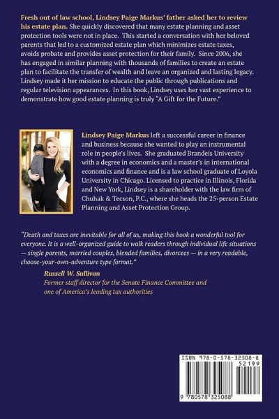 A real world guide from an estate planner with one foot in law, one foot in finance and family in her heart. Ms. Markus takes readers on a journey through the world of estate planning. In her easy-to-follow writing style she provides the ins and outs of every estate planning tool from simple to advanced. By interweaving the family story of Jack and Diane she leads readers through estate planning needs from the time they decide to marry through the birth of children, business growth, divorce, and the formation of new families and relationships along the way. Ms. Markus, has had successful careers in international finance and law. She is currently the head of a large estate planning group in Chicago and uses her diverse background and deep knowledge to help readers maintain orderly estate plans as their lives change. In this new book, she takes a dry science and makes it both fun and informative.