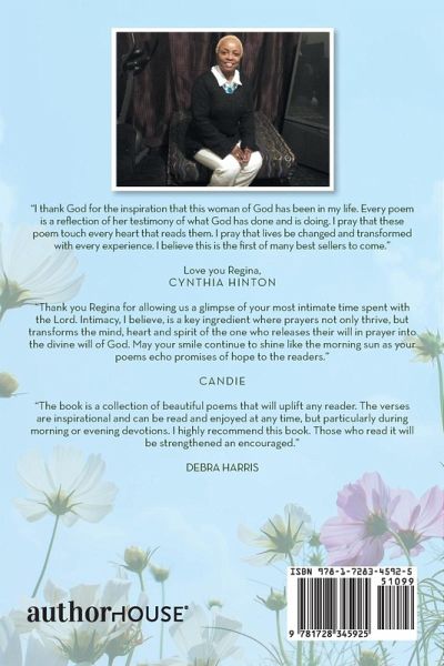 Mrs. Regina Jenkins lives in Jackson, MS with her husband Elder Henry E. Jenkins. She is very devoted to the outreach ministry at her church. She is a native of Chicago, Illinois. She is the youngest of six siblings. She is the mother of Steven D. Smith, Diana C. Smith and Tyana R. Young. She also has ten grandchildren who adore her, namely Trenis, Jada S., Emmanuel, Jada Y., Sanai, Desmond, Julian, Nilah, Success, and Jordan. Her poems make people smile. She has always loved to write, to encourage and inspire.