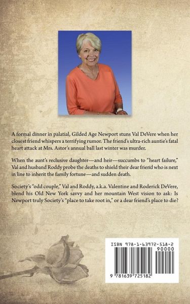 A formal dinner in palatial, Gilded Age Newport stuns Val DeVere when her closest friend whispers a terrifying rumor. The friend's ultra-rich auntie's fatal heart attack at Mrs. Astor's annual ball last winter was murder. When the aunt's reclusive daughter-and heir-succumbs to "heart failure," Val and husband Roddy probe the deaths to shield their dear friend who is next in line to inherit the family fortune-and sudden death. Society's "odd couple," Val and Roddy, a.k.a. Valentine and Roderick DeVere, blend his Old New York savvy and her mountain West vision to ask: Is Newport truly Society's "place to take root in," or a dear friend's place to die?