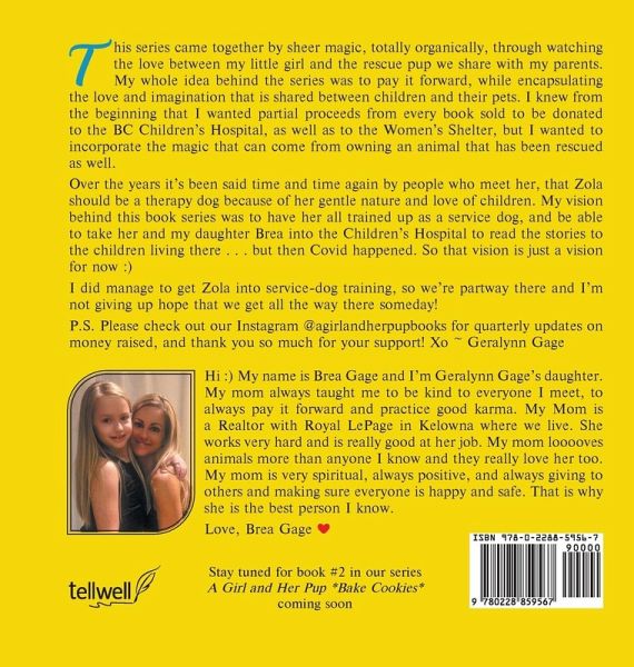 This series came together kind of by accident, totally organically, through watching the love between my little girl and the rescue pup we share with my parents. The whole idea behind the series was to pay it forward, while capturing the love and imagination that is shared between children and their pets. I knew from the beginning that I wanted partial proceeds from every book sold to be donated to the BC Children's Hospital and to the Royal LePage Shelter Foundation (Women's Shelter), but I wanted to incorporate the magic that can come for children from spending time with an animal as well. Over the years it's been said time and time again by people who meet her that Zola should be a therapy dog because of her gentle nature and love of children. The vision was to get Zola all trained up as a service dog, and be able to take her into Children's Hospital to read the books to the children staying there. But then Covid happened, so that vision is just a vision for now. We will just have to wait and see what it all evolves into! Please check out our Instagram, @agirlandherpupbooks, for updates on money raised. Thank you so much for your support! Xo~ Geralynn Gage
