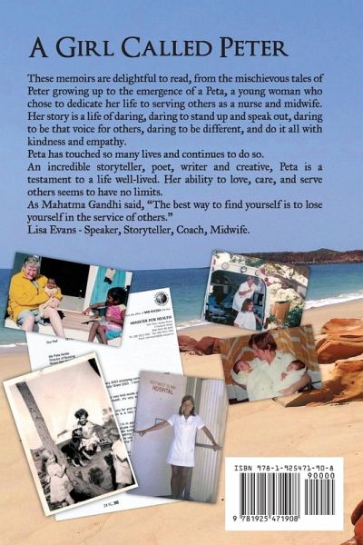 These memoirs are delightful to read, from the mischievous tales of Peter growing up to the emergence of a Peta, a young woman who chose to dedicate her life to serving others as a nurse and midwife. Her story is a life of daring, daring to stand up and speak out, daring to be that voice for others, daring to be different, and do it all with kindness and empathy. Peta has touched so many lives and continues to do so. An incredible storyteller, poet, writer and creative, Peta is a testament to a life well-lived. Her ability to love, care, and serve others seems to have no limits. As Mahatma Gandhi said, "The best way to find yourself is to lose yourself in the service of others." Lisa Evans - Speaker, Storyteller, Coach, Midwife.
