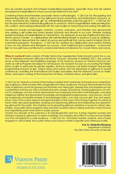 How do scholars research and interpret marginalized populations, especially those that are seldom recognized as marginalized or whose sources are believed to be rare? Combining intersectional feminism and public history methodologies, 'A Girl Can Do: Recognizing and Representing Girlhood' reflects on how girlhood is found, researched, and interpreted in museums, archives, and historic sites. Defining "girl" as "self-identifying females under the age of 21," 'A Girl Can Do' lays the groundwork for understanding girlhood, its constructs, and its marginalization while providing faculty, students, and working professionals with ten case studies on researching and working with girlhood. Contributors include archaeologists, archivists, curators, educators, and historians who demonstrate how adding a girl studies lens fosters greater inclusivity and diversity in our work. Whether studying spatial techniques of marginalization in colonial Peru, the daybooks as records of girlhood in late-nineteenth century Sweden, or collaborating with self-identifying fangirls to produce a pop-up exhibition, the contributors demonstrate the variety of sources and methods that can be used to interpret this oft-overlooked population. Throughout, 'A Girl Can Do' petitions for collaborative and creative thinking in how we can reframe and reinterpret our sources - both traditional and overlooked - to shed new light on how girls have contributed to, and provide frames of reference for, human history and culture.