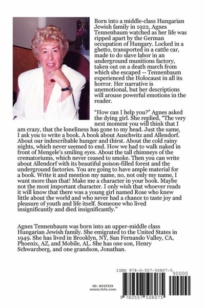 Holocaust survivor Agnes Tennenbaum describes her experiences as she passed through German occupation, the ghetto, the transport in a cattle car, internment in Auschwitz and Allendorf, liberation, the displaced persons camp, and emigration to the United States.