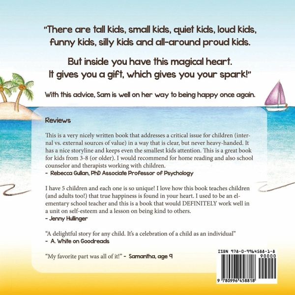 "There are tall kids, small kids, quiet kids, loud kids, funny kids, silly kids, and all-around-proud kids. But inside you have this magical heart. It gives you a gift, which gives you your spark!" With this advice, Sam is well on her way to being happy once again. A Girl Named Sam celebrates each child's uniqueness and lets all children know that they are special and have much to offer. It's playful, fun and the illustrations will both engage and inspire your child's imagination with delight. A Girl Named Sam is suitable for many age groups, especially ages 4-8...