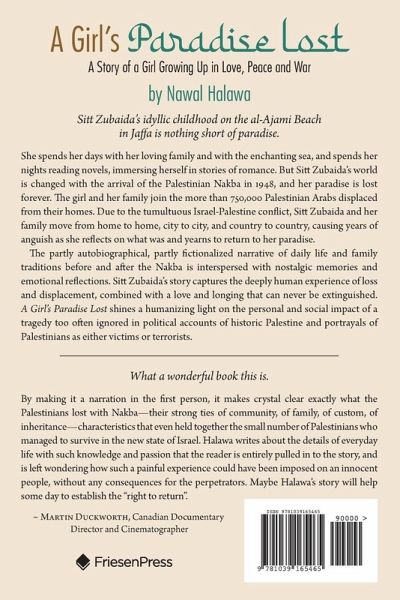 Sitt Zubaida's idyllic childhood on the al-Ajami Beach in Jaffa is nothing short of paradise. She spends her days with her loving family and with the enchanting sea, and spends her nights reading novels, immersing herself in stories of romance. But Sitt Zubaida's world is changed with the arrival of the Palestinian Nakba in 1948, and her paradise is lost forever. The girl and her family join the more than 750,000 Palestinian Arabs displaced from their homes. Due to the tumultuous Israel-Palestine conflict, Sitt Zubaida and her family move from home to home, city to city, and country to country, causing years of anguish as she reflects on what was and yearns to return to her paradise. The partly autobiographical, partly fictionalized narrative of daily life and family traditions before and after the Nakba is interspersed with nostalgic memories and emotional reflections. Sitt Zubaida's story captures the deeply human experience of loss and displacement, combined with a love and longing that can never be extinguished. A Girl's Paradise Lost shines a humanizing light on the personal and social impact of a tragedy too often ignored in political accounts of historic Palestine and portrayals of Palestinians as either victims or terrorists.