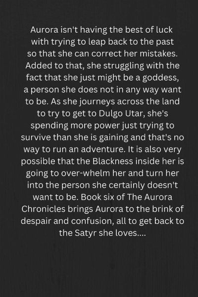 Aurora is not having much luck lately. As the world she created falls apart around here, she's starting to realize that she just might be the goddess that everyone around her thinks she is. On top of all that, she's using more power than she's absorbing and at the moment, there is no way she can leap back in time to correct the mistake she made so that she can be with Stiz. Book six of The Aurora Chronicles has Aurora struggling with herself and those around her who want to force her to become something she isn't.