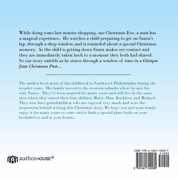 While doing some last minute shopping on Christmas Eve a man has a magical experience. He watches a child preparing to get on Santa's lap through a shop window and is reminded about a special Christmas memory. When the child gets down Santa makes eye contact with the man and they are immediately taken back to a moment they had shared in his past. So the story unfolds as he stares through a window of time at a Glimpse from Christmas Past...