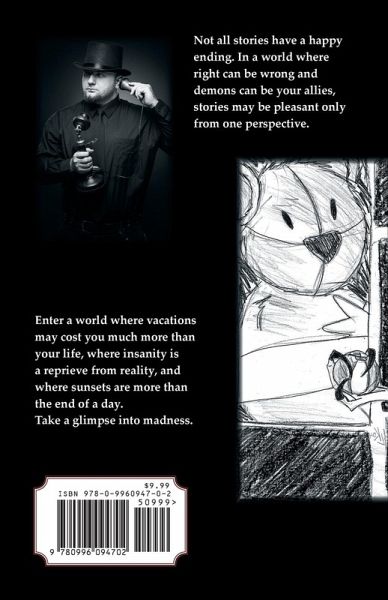 Have you ever lay awake at night, watching the shadows? Have you ever seen them move? If you could talk to The Devil himself, what would you say? Would you want to talk in the first place? Have you ever quantified love? In a world where right can be wrong, where demons can be your allies, and laughter is anything but pleasant, not all stories have a happy ending. This collection of 27 macabre short stories will dig into your mind, make a home there, and watch the world unfold from the inside.