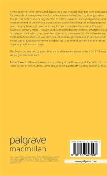 Through studies of beheaded Irish traitors, smugglers hung in chains on the English coast, suicides subjected to the surgeon's knife in Dresden and the burial of executed Nazi war criminals, this volume provides a fresh perspective on the history of capital punishment. The chapters 'Introduction: A Global History of Execution and the Criminal Corpse' and 'The Gibbet in the Landscape: Locating the Criminal Corpse in Mid-Eighteenth-Century England' are open access under a CC BY 4.0 license.
