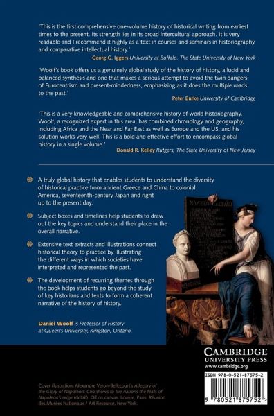 A global history of historical writing, thought and the development of the historical discipline from the ancient world to the present. This is a definitive guide to human efforts to recover, understand and represent the past, bringing together different historical traditions and their social, economic, political and cultural contexts. Daniel Woolf offers clear definitions of different genres and forms of history and addresses key themes such as the interactions between West and East, the conflict of oral, pictographic, and written accounts of the past and the place of history in society and in politics. Numerous textual extracts and illustrations in every chapter capture the historical cultures of past civilizations and demonstrate the different forms that historical consciousness has taken around the world. The book offers unique insights into the interconnections between different historical cultures over 3000 years and relates the rise of history to key themes in world history.