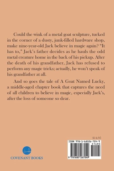 Could the wink of a metal goat sculpture, tucked in the corner of a dusty, junk-filled hardware shop, make nine-year-old Jack believe in magic again? "It has to," Jack's father decides as he hauls the odd metal creature home in the back of his pickup. After the death of his grandfather, Jack has refused to perform any magic tricks; actually, he won't speak of his grandfather at all. And so goes the tale of A Goat Named Lucky, a middle-aged chapter book that captures the need of all children to believe in magic, especially Jack's, after the loss of someone so dear.