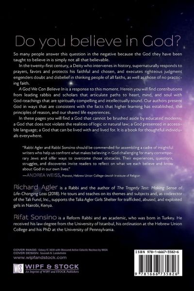 Do you believe in God? So many people answer this question in the negative because the God they have been taught to believe in is simply not all that believable. In the twenty-first century, a Deity who intervenes in history, supernaturally responds to prayers, favors and protects his faithful and chosen, and executes righteous judgment engenders doubt and disbelief in thinking people of all faiths, as well as those of no practicing faith. A God We Can Believe In is a response to this moment. Herein you will find contributions from leading rabbis and scholars that articulate paths to heart, mind, and soul with God-teachings that are spiritually compelling and intellectually sound. Our authors present God in ways that are consistent with the facts that higher learning has established, the principles of reason, and our shared life experiences. In these pages you will find a God that cannot be brushed aside by educated moderns; a God that does not violate the realities of logic or natural law; a God presented in accessible language; a God that can be lived with and lived for. It is a book for thoughtful individuals everywhere.