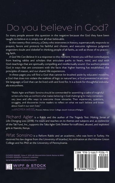 Do you believe in God? So many people answer this question in the negative because the God they have been taught to believe in is simply not all that believable. In the twenty-first century, a Deity who intervenes in history, supernaturally responds to prayers, favors and protects his faithful and chosen, and executes righteous judgment engenders doubt and disbelief in thinking people of all faiths, as well as those of no practicing faith. A God We Can Believe In is a response to this moment. Herein you will find contributions from leading rabbis and scholars that articulate paths to heart, mind, and soul with God-teachings that are spiritually compelling and intellectually sound. Our authors present God in ways that are consistent with the facts that higher learning has established, the principles of reason, and our shared life experiences. In these pages you will find a God that cannot be brushed aside by educated moderns; a God that does not violate the realities of logic or natural law; a God presented in accessible language; a God that can be lived with and lived for. It is a book for thoughtful individuals everywhere.