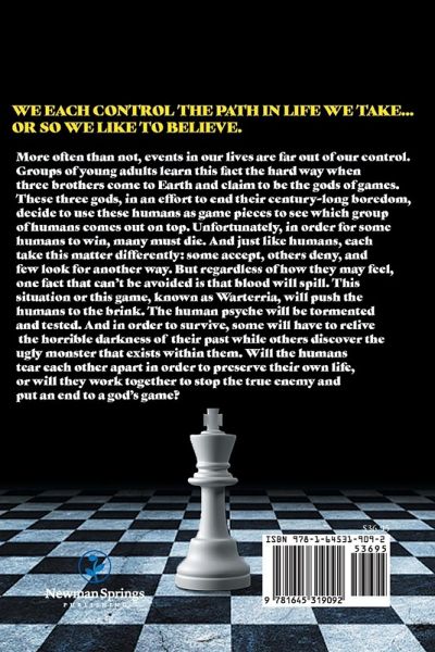 We each control the path in life we take... or so we like to believe. More often than not, events in our lives are far out of our control. Groups of young adults learn this fact the hard way when three brothers come to Earth and claim to be the gods of games. These three gods, in an effort to end their century-long boredom, decide to use these humans as game pieces see which group of humans come out on top. Unfortunately, in order for some humans to win, many must die. And just like humans, each take this matter differently: some accept, others deny, and few look for another way. But regardless of how they may feel, one fact that can't be avoided is that blood will spill. This situation or this game, known as Warterria, will push the humans to the brink. The human psyche will be tormented and tested. And in order to survive, some will have to relive the horrible darkness of their past while others discover the ugly monster that exists within them. Will the humans tear each other apart in order to preserve their own life, or will they work together to stop the true enemy and put an end to a god's game?