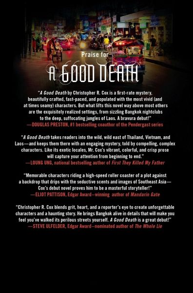 "A first rate mystery, beautifully crafted, fast-paced, and populated with the most vivid (and at times seamy) characters... A bravura debut!" --Douglas Preston, #1 bestselling co-author of the Pendergast series of novels A nail-biting debut mystery that plunges readers into the seamy side streets of late-90s Bangkok and across the untamed mountains of the Lao-Vietnam border, hot on the heels of an alluring woman who's officially dead - unless she's masterminded a half-million-dollar life-insurance scam An expertly crafted debut, A GOOD DEATH introduces Sebastian Damon, a sharp-witted though struggling Boston PI who catches an intriguing case. Linda Watts is a beautiful, talented Southeast Asian refugee with a promising career in finance-or she was, until she turned up dead, the victim of a heroin OD, in a cheap Bangkok guest house. Her death seemed straightforward to the Thai authorities, but her insurance company isn't buying it. They send Sebastian halfway around the world to investigate-where he finds himself confounded and completely out of place chasing faint leads through the broken, bewildering streets of Thailand's teeming capital. An award-winning journalist with decades of experience traveling in and reporting on Southeast Asia, Christopher R. Cox takes readers on a vibrant journey through a corrupt police bureaucracy, a network of steamy Bangkok nightclubs and grimy hostels to a place where you can you feel the humid air and smell the stir-fried street food. Along the way, Sebastian finds romance as he falls for a captivatingly mysterious woman and camaraderie with his father's wise-cracking old Special Forces wingman -- an expat who can navigate Bangkok's chaotic underbelly and the wild mountains of Laos with equal aplomb. For Sebastian, it's the assignment of a lifetime, a chase that will lead him to a long-buried truth at the heart of all the dark lies, a quest that will change him forever in this richly imagined, compelling debut perfect for fans of John Burdett.