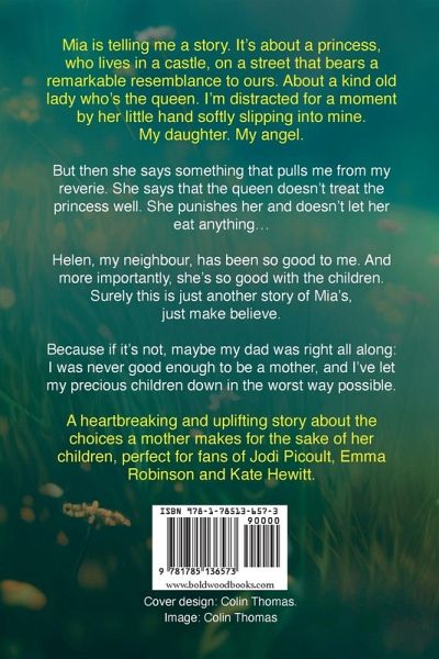 Mia is telling me a story. It's about a princess, who lives in a castle, on a street that bears a remarkable resemblance to ours. About a kind old lady who's the queen. I'm distracted for a moment by her little hand softly slipping into mine. My daughter. My angel. But then she says something that pulls me from my reverie. She says that the queen doesn't treat the princess well. She punishes her and doesn't let her eat anything... Helen, my neighbour, has been so good to me. And more importantly, she's so good with the children. Surely this is just another story of Mia's, just make believe. Because if it's not, maybe my dad was right all along: I was never good enough to be a mother, and I've let my precious children down in the worst way possible. A heartbreaking and uplifting story about the choices a mother makes for the sake of her children, perfect for fans of Jodi Picoult, Emma Robinson and Kate Hewitt.