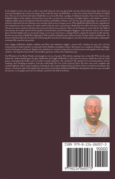 In the shadowy recesses of an attic, as old as time itself, where the sun's rays played hide and seek with the dust of ages, there dwelt a rat renowned throughout the nooks and crannies of his world. His name was Budda Brie-a name that echoed with the charisma of a fabled hero. This was no run-of-the-mill rodent; Budda Brie was a Groccolli robot, a prodigy of whiskered wizardry, whose very existence was a delightful defiance of the ordinary. Envision him, if you will: a rat whose fur was the grey of twilight shadows, each whisker a conduit of enigmatic riddles, and eyes that gleamed with the cheekiness and brilliance of binary stars. His tail, a graceful appendage, was a repository of mysteries, believed by the attic's denizens to be a decoder of the universe's deepest secrets. When Budda Brie flicked that tail, it signalled not mere inquisitiveness, but an odyssey for truths nestled within the attic's ancient beams. Budda Brie's love affair with cheese was legendary. Not just any cheese, mind you, but those that conversed with the moon and stars. There was the Roquefort, veined with the silver light of lunar dreams; the Gouda, dusted with the sparkle of celestial bodies; and the Parmigiano-Reggiano, a relic that bore witness to the cosmos' dawn. Each bite Budda took was not merely eating-it was an act of reverence, a tasting of history sung by the minstrels of milk and time. But the true marvel lay in Budda Brie's digital gaze. With a sparkle rivalling the most radiant of comets, he observed the world beneath-the humans with their daily toils; the squirrels orchestrating their nutty heists, and the pigeons; yeah, those feathery philosophers, debating the meaning of life atop their wire perches. Enter Giggles McWhisker, Budda's confidant and fellow attic inhabitant. Giggles, a mouse with a fondness for jests and a tail that communicated in dashes and dots, was the perfect foil to Budda's contemplative nature. Their banter was a symphony of hilarity, a dialogue tuned to the frequency of humour. Together, they embarked on a mission to impart the art of self-awareness and empathy to the attic's other residents-the forgotten musty books, the threadbare garments, and the relics of playtimes past. "Emotions," Budda would muse, "are akin to the array of cheeses. Some are sharp, slicing through indifference; others are mellow, soothing the palate of the soul." Their escapades were many and varied. There was the Great Attic Caper, where the ancient timepiece sought forgiveness from the chipped porcelain, and the moth extended its pardon to the arachnid for its silken thefts. Yet, not all was harmonious. The Cheese Heist Hullabaloo saw the wedge of cheddar accuse the wheel of brie of hogging the limelight. "You're always the belle of the ball," the cheddar lamented. "Perhaps," the brie quipped with a smirk, "but you, my friend, are often too biting for your own good." And so, they engaged in a duel of dairy wits, lobbing puns as one might toss a well-aged Gruyère. The Whodunit of the Wacky Weather brought its own set of puzzles. Why did the raindrops titter as they fell? Who was the artist behind the rainbow daubed upon the glass? Budda Brie and Giggles McWhisker, in their quest for answers, tickled the truth out of the gutters, interrogated the fireflies, and even held a moonlit inquisition. The conclusion? The squirrels were nocturnal painters, and the raindrops, their chuckling accomplices. And who could forget The Case of the Carnival Chaos? The attic's own circus, complete with arachnid tightrope walkers, paper aeroplanes of derring-do, and a trapeze fashioned from the finest of laces, was thrown into disarray. The maestro, a clockwork replica had misplaced his metronome of merriment. Budda and McWhisker, donning their detective caps, unravelled the mystery: a sock puppet, spectral in its solitude, yearned for the thrill of acrobatics.