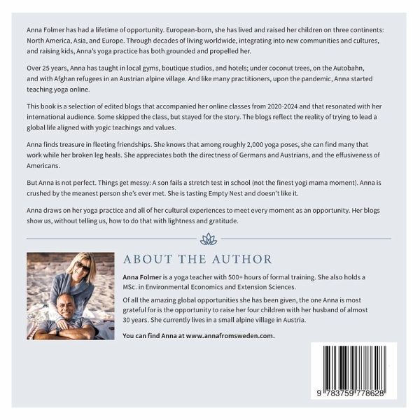 Anna has taught yoga for 25 years in U.S. gyms and boutique studios; under coconut trees and on the Autobahn; and most recently, in an Afghan refugee center near her Austrian alpine village. This coffee-table book is a drop into Anna's life that shows readers through light-hearted blogs how to find the upside in all the beautiful, imperfect realities of parenting, working, and aging while embracing life across three continents. Stunning international photos, recipes, and cultural reflections engage readers' personal connection to Anna for a uniquely relatable experience.