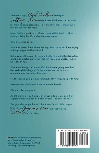 *A standalone novel set in the world of St. Mary's **INCLUDES the prequel, The Wild Mustang & The Dancing Fairy Two years ago, Reed Jackson betrayed Calliope Thorne and broke her heart. So she stole his most prized possession - a white mustang - and drove it into the lake for revenge. Now, Callie is stuck at a reform school while Reed is off at college, living his life without repercussions. Until he comes back. With him comes back all the feelings that Callie has been trying to bury: anger and heartbreak. But most of all, desire. At the sight of his beautiful but lying lips and his gunmetal gray eyes that still taunt and smolder when he looks at her. Whatever though. It's not as if Callie is ever going to fall for her ex-boyfriend again. Or let him corner her in a bar one night and touch her, kiss her... Neither is she going to kiss him back. Or worse, sleep with him. Because that would make her naïve and foolish. Oh, and also pregnant. And there's no way Callie is ever going to get pregnant at eighteen and with Reed's baby, no less. The guy she hates.The guy who taught her all about heartbreak. Who might look like a gorgeous hero but really is the villain of her story.
