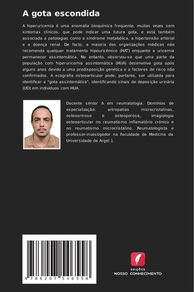 A hiperuricemia é uma anomalia bioquímica frequente, muitas vezes sem sintomas clínicos, que pode indicar uma futura gota, e está também associada a patologias como a síndrome metabólica, a hipertensão arterial e a doença renal. De facto, a maioria das organizações médicas não recomenda qualquer tratamento hipouricémico (HAT) enquanto a uricemia permanecer assintomática. No entanto, observou-se que uma parte da população com hiperuricemia assintomática (HUA) desenvolve gota após alguns anos devido a uma predisposição genética e a factores de risco não confirmados. A ecografia osteoarticular pode, portanto, ser utilizada para identificar a "gota assintomática", identificando sinais de deposição urinária (UD) em indivíduos com HUA.