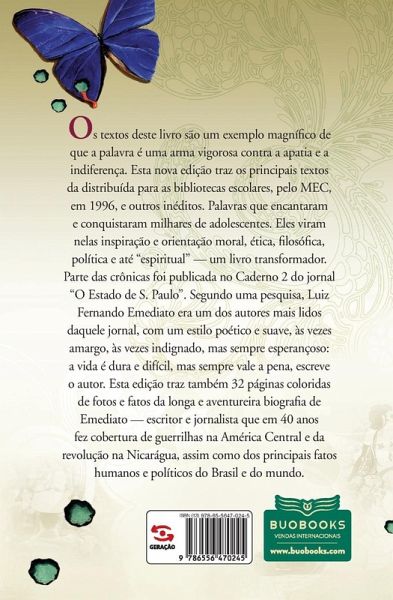 Esta nova edição revista e ampliada de "A Grande Ilusão", de Luiz Fernando Emediato, traz os principais textos da primeira edição, distribuída para as bibliotecas escolares, pelo MEC, em 1996, e mais textos inéditos, escritos recentemente. Nos últimos 25 anos esses textos encantaram e conquistaram milhares de adolescentes. Com o surgimento das redes sociais, muitos deles, já adultos, procuraram o autor para dizer que o livro servira para orientação moral, ética, filosófica, política e até "espiritual" deles. Um livro "transformador". De fato, o livro, numa linguagem simples e direta, mas tratando de temas profundos, toca suavemente a mente e o coração dos leitores. Da indignação ao lirismo; do sentido de responsabilidade humana à busca da alegria: os textos são um exemplo cristalino de que a palavra é uma arma vigorosa contra a apatia e a indiferença. Parte das crônicas foi publicada no final dos anos 1980, aos domingos, no Caderno 2 do jornal "O Estado de S. Paulo". Segundo uma pesquisa da época, Luiz Fernando Emediato era um dos autores mais lidos daquele jornal. O livro é agora reeditado, em nova seleção e com inclusão de textos recentes. Uma reedição primorosa, revista e atualizada, mais adequada para leitores jovens, mas não só para eles. E que não mudou o recado: a vida às vezes é dura e difícil, mas sempre vale a pena. Esta edição traz também 32 páginas coloridas de fotos e fatos da longa e aventureira biografia de Emediato - escritor e jornalista que em 40 anos fez cobertura de guerrilhas na América Central, da revolução na Nicarágua, assim como dos principais fatos humanos e políticos do Brasil. Traz também um estudo da obra, assinado pela professora Maria Antonieta Antunes Cunha, uma das principais educadoras do país.