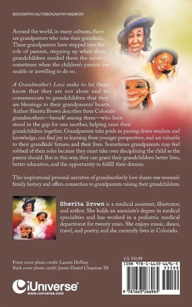 What happens when grandparents become parents the second time around? Across cultures and communities, countless grandparents are raising their grandchildren, providing stability, love, and faith when others cannot. In A Grandmother's Love, Sherita Brown shares a moving, faith-filled memoir that celebrates the unbreakable bond between grandparent and grandchild. Through the stories of three generations of strong African American women in Colorado, including herself, Brown explores what it means to embrace kinship care, pass down legacy, and parent with grace, even in the face of personal loss and societal challenges. This heartfelt narrative gives voice to grandparents raising grandchildren, offering spiritual encouragement, parenting insight, and cultural connection. It speaks to Christian caregivers navigating teen parenting, trauma recovery, educational challenges, and the emotional complexity of stepping into the parental role. With honesty and warmth, Brown shows how love, patience, and God's guidance can break generational cycles and lead children toward better futures. A Grandmother's Love is more than a memoir. It is a lifeline for those walking a similar path. Whether you are raising grandchildren, supporting kinship caregivers, or seeking inspiration through true stories of resilience and faith, this book offers wisdom, healing, and hope. If you are looking for guidance, grace, and affirmation on the grandparenting journey, this is the book for you.