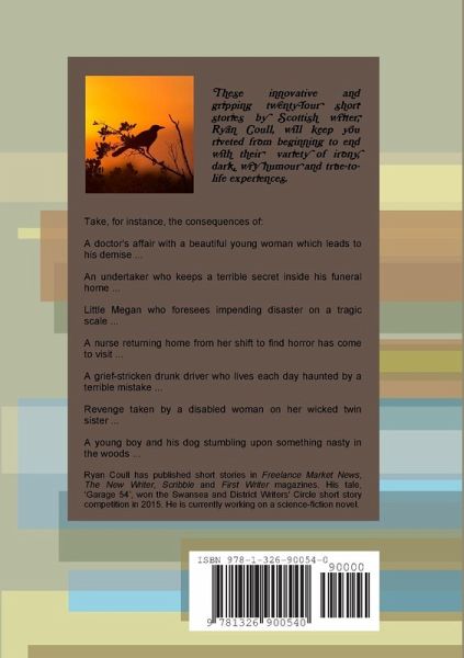 'A Grave Temptation' is a collection of twenty-four dark and emotional fictional short stories which delve into everything from mystery to the supernatural,from tales of loss to stories of the heart. For instance, meet the undertaker who keeps a terrible secret in his funeral home ... the doctor whose affair with a young patient drastically backfires ... the nurse who returns from her shift to find a deadly intruder in the house ... the clairvoyant little girl who sees imminent death on a tragic scale ... the disabled woman who takes revenge on her wicked twin sister ... a drunk driver who is haunted by a mistake he can't forget ... the story of the young boy and his dog who stumble on something unsavoury in the woods ... Scottish writer, Ryan Coull, enjoys writing tales of the sinister and supernatural as much as reading them. His tale, 'Garage 54', won the Swansea and District Writers' Circle short story competition in 2015; he is currently working on a science-fiction novel.