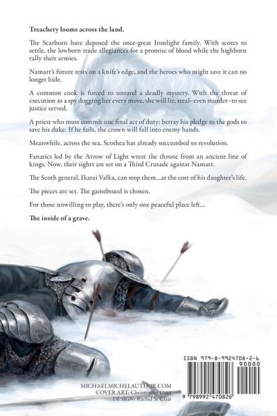Treachery looms across the land. With scores to settle, the lowborn shake rust from their knives and trade allegiances for a promise of blood while the highborn rally their armies. Namarr's future rests on a blade's edge, and the heroes who might save it can no longer hide. Meanwhile, across the sea, Scothea has already succumbed to revolution. Fanatics led by the Arrow of Light wrest the throne from an ancient line of kings. Now, their sights are set on a Third Crusade against Namarr. For most, it will be their last. The pieces are set. The gameboard is chosen. For those unwilling to play, there's only one peaceful place left... The inside of a grave. The second installment in the Dreams of Dust and Steel series continues with the plight of characters both loved and hated. Perfect for fans of Game of Thrones, Age of Madness, The Five Warrior Angels, A Land Fit for Heroes, and Ash and Sand.