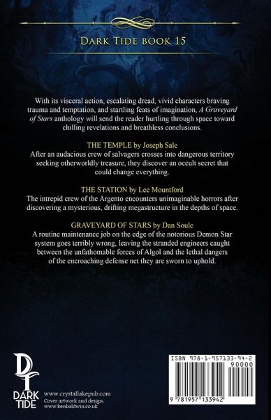 In uncharted and forbidden tracts of space, ancient evils awaken... With its visceral action, escalating dread, vivid characters braving trauma and temptation, and startling feats of imagination, A Graveyard of Stars anthology will send the reader hurtling through space toward chilling revelations and breathless conclusions. The Temple by Joseph Sale: After an audacious crew of salvagers crosses into dangerous territory seeking otherworldly treasure, they discover an occult secret that could change everything. The Station by Lee Mountford: The intrepid crew of the Argento encounters unimaginable horrors after discovering a mysterious, drifting megastructure in the depths of space. Graveyard of Stars by Dan Soule: A routine maintenance job on the edge of the notorious Demon Star system goes terribly wrong, leaving the stranded engineers caught between the unfathomable forces of Algol and the lethal dangers of the encroaching defense net they are sworn to uphold. These three brilliantly inventive novellas combined in this compulsive sci-fi collection to explore threats lurking in a forbidden and blighted sector of space. Perfect for fans of Event Horizon, Alien, Dead Silence, and Luminous Dead. Proudly represented by Crystal Lake Publishing-Tales from the Darkest Depths.