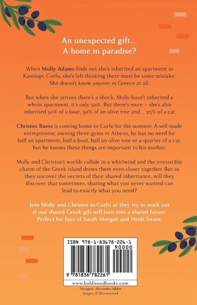 Escape to the sunshine with the queen of Greek romance, Mandy Baggot! An unexpected gift... A home in paradise? When Molly Adams finds out she's inherited an apartment in Kassiopi, Corfu, she's left thinking there must be some mistake. She doesn't know anyone in Greece at all. But when she arrives there's a shock. Molly hasn't inherited a whole apartment, it's only 50%. But there's more - she's also inherited 50% of a boat, 50% of an olive tree and... 25% of a cat. Christos Baros is coming home to Corfu for the summer. A self-made entrepreneur, owning three gyms in Athens, he has no need for…mehr