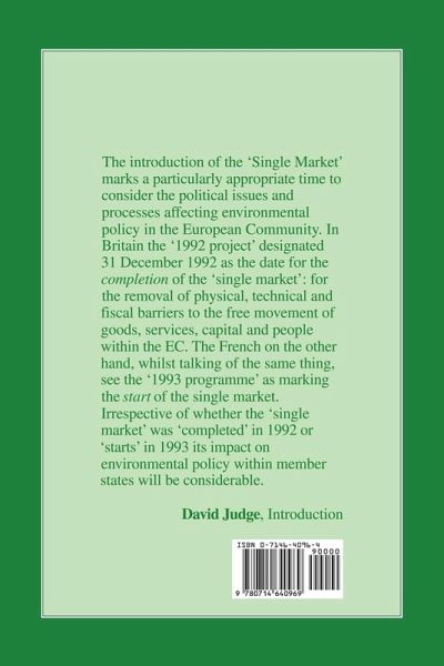Chapter 1 A Green Dimension for the European Community? David Judge; Part 1 Issues; Chapter 2 The European Community's Environmental Policy 1957 to '1992': From Incidental Measures to an International Regime? Philipp M. Hildebrand; Chapter 3 Between Economy and Ecology? The Single Market and the Integration of Environmental Policy Albert Weale Andrea Williams; Chapter 4 A Sound European Environmental Policy: Challenges Possibilities and Barriers Jan Van Der Straaten; Chapter 5 Product-oriented Environmental Policy and Networks: Ecological Aspects of Economic Internationalisation Frank Boons; Part 2 Processes; Chapter 6 Environmental Groups and the EC: Challenges and Opportunities Sonia Mazey Jeremy Richardson; Chapter 7 The Green Voter in the 1989 European Elections Mark N. Franklin Wolfgang Rüdig; Chapter 8 The German Greens and the European Community: Dilemmas of a Movement-Part y Elizabeth Bomberg; Chapter 9 'Predestined to Save the Earth': The Environment Committee of the European Parliament David Judge; Chapter 10 The Implementation and Enforcement of European Community Environment Legislation Ken Collins David Earnshaw;