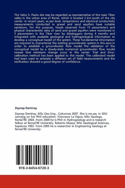 The Valco S. Paolo site may be regarded as representative of the main Tiber valley in the urban area of Rome, which is located 2 km south of the city center. In recent years, as per level, temperature and electrical conductivity measurements conducted in gravel and sand aquifers have notable variations. For this purpose, heads observed from 15 piezometers and physical characteristic data of sand and gravel aquifers were monitored in 5 piezometers in the Tiber river by dataloggers during 4 months and integrated with available geological and hydrogeological information to develop a conceptual model of the system. These fundamental information are required to characterize the existing groundwater system in this area in order to establish a groundwater flow model. The validation of the conceptual model by a steady-state numerical groundwater flow model reveals that minimum change occur in the center. Trial and Error calibration method has been applied to this model. The calibrated model had been used to simulate a different set of field measurements and the verification showed a good degree of confidence.