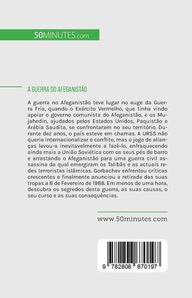 A guerra no Afeganistão teve lugar no auge da Guerra Fria, quando o Exército Vermelho, que tinha vindo apoiar o governo comunista do Afeganistão, e os Mujahedin, ajudados pelos Estados Unidos, Paquistão e Arábia Saudita, se confrontaram no seu território. Durante dez anos, o país esteve em chamas. A URSS não queria internacionalizar o conflito, mas o jogo de alianças levou-a inevitavelmente a fazê-lo, enfraquecendo ainda mais a União Soviética com os seus pés de barro e arrastando o Afeganistão para uma guerra civil assassina da qual emergiram os Talibãs e as actuais redes terroristas islâmicas. Gorbachev enfrentou críticas crescentes e finalmente anunciou a retirada das suas tropas a 8 de Fevereiro de 1988. Em menos de uma hora, descubra os segredos desta guerra, as suas causas, o seu curso e as suas consequências.