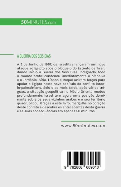 A 5 de Junho de 1967, os israelitas lançaram um novo ataque ao Egipto após o bloqueio do Estreito de Tiran, dando início à Guerra dos Seis Dias. Indignado, todo o mundo árabe condenou imediatamente a ofensiva e a Jordânia, Síria, Líbano e Iraque uniram forças para apoiar o Egipto neste novo capítulo do conflito israelo-palestiniano. Seis dias mais tarde, após vários tréguas, a situação geopolítica no Médio Oriente mudou profundamente: Israel tem agora uma posição dominante sobre os seus vizinhos árabes e o seu território quadruplicou. Graças a este livro, mergulhe no coração deste conflito e descubra os antecedentes desta guerra e as suas consequências em apenas 50 minutos.