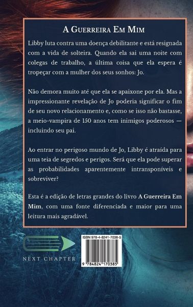 Libby luta contra uma doença debilitante e está resignada com a vida de solteira. Quando ela sai uma noite com colegas de trabalho, a última coisa que ela espera é tropeçar com a mulher dos seus sonhos: Jo. Não demora muito até que ela se apaixone por ela. Mas a impressionante revelação de Jo poderia significar o fim de seu novo relacionamento e, como se isso não bastasse, a meio-vampira de 150 anos tem inimigos poderosos - incluindo seu pai. Ao entrar no perigoso mundo de Jo, Libby é atraída para uma teia de segredos e perigos. Será que ela pode superar as probabilidades aparentemente intransponíveis e sobreviver? Esta é a edição de letras grandes do livro A Guerreira Em, com uma fonte diferenciada e maior para uma leitura mais agradável.