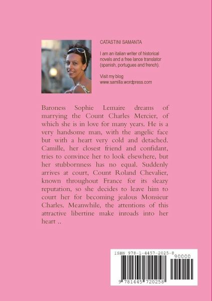 Baroness Sophie Lemaire dreams of marrying the Count Charles Mercier, of which she is in love for many years. He is a very handsome man, with the angelic face but with a heart very cold and detached. Camille, her closest friend and confidant, tries to convince her to look elsewhere, but her stubbornness has no equal. Suddenly arrives at court, Count Roland Chevalier, known throughout France for its sleazy reputation, so she decides to leave him to court her for becoming jealous Monsieur Charles. Meanwhile, the attentions of this attractive libertine make inroads into her heart .. -------------------------------------------------- BUYING OR DOWNLOADING THIS BOOK YOU DONATE 50 CENTS TO THE IHP ASSOCIATION FOR THE HEALT AND CARE OF MALTREATED HORSES www.horseprotection.it THANKS! my blog www.italianromances.wordpress.com