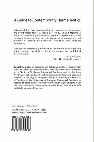 Acknowledging that hermeneutics has become an increasingly important major focus in theological study, Donald McKim's A Guide to Contemporary Hermeneutics presents a series of essays by various writers, assessing current hermeneutical approaches and methods of biblical hermeneutics from their own personal experience.