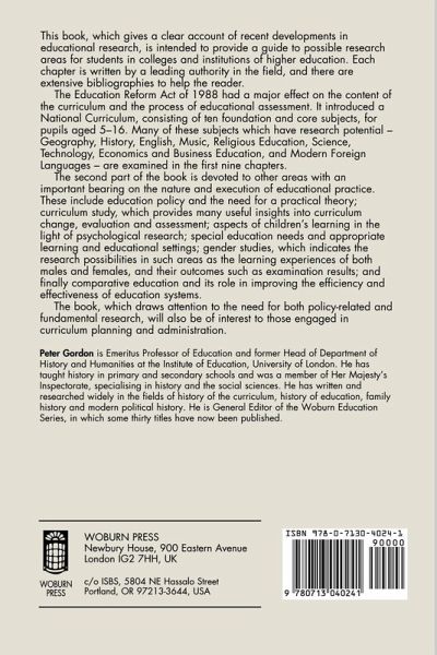 Geography, Bill Marsden history, Martin Booth English, Tony Burgess music, Piers Spencer religious education, Leslie J. Francis science, John Ogborn technology, Richard Kimbell economics and business education, David J. Whitehead modern foreign languages, Colin Wringe education policy, Stewart Ranson curriculum study, John Eliott children's learning, Kathy Sylva special education, Seamus Hegarty gender, Sara Delamont comparative education, Keith Watson.