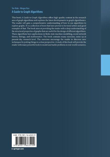 This book A Guide to Graph Algorithms offers high-quality content in the research area of graph algorithms and explores the latest developments in graph algorithmics. The reader will gain a comprehensive understanding of how to use algorithms to explore graphs. It is a collection of texts that have proved to be trend setters and good examples of that. The book aims at providing the reader with a deep understanding of the structural properties of graphs that are useful for the design of efficient algorithms. These algorithms have applications in finite state machine modelling, social network theory, biology, and mathematics. The book contains many exercises, some up at present-day research-level. The exercises encourage the reader to discover new techniques by putting things in a clear perspective. A study of this book will provide the reader with many powerful tools to model and tackle problems in real-world scenarios.