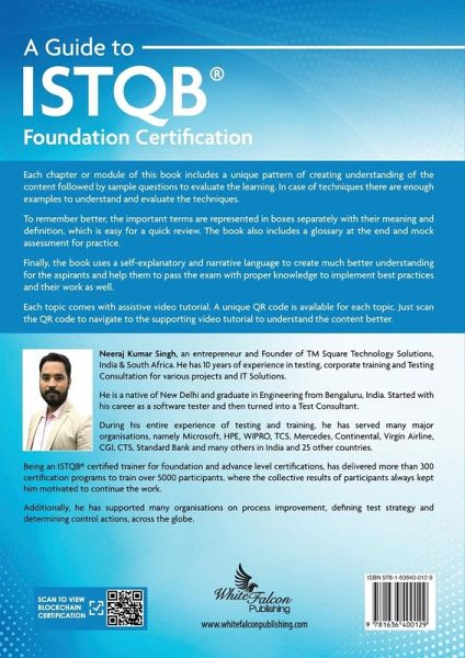 Each chapter or module of this book includes a unique pattern of creating understanding of the content followed by sample questions to evaluate the learning. In case of techniques there are enough examples to understand and evaluate the techniques. To remember better, the important terms are represented in boxes separately with their meaning and definition, which is easy for a quick review. The book also includes a glossary at the end and mock assessment for practice. Finally, the book uses a self-explanatory and narrative language to create much better understanding for the aspirants and help them to pass the exam with proper knowledge to implement best practices and their work as well. Each topic comes with assistive video tutorial. A unique QR code is available for each topic. Just scan the QR code to navigate to the supporting video tutorial to understand the content better.