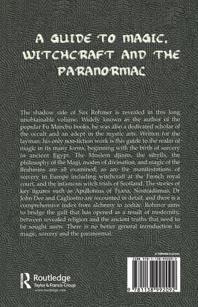 First published in 2005. The shadow side of Sax Rohmer is revealed in this long unobtainable volume; widely known as the author of the popular Fu Manchu books, he was also a dedicated scholar of the occult and an adept in the mystic arts. Written for the layman, his only non-fiction work is this guide to the realm of magic in its many forms, beginning with the birth of sorcery in ancient Egypt. The Moslem djinns, the sibylls, the philosophy of the Magi, modes of divination, and magic of the Brahmins are all examined, as are the manifestations of sorcery in Europe including witchcraft at the French royal court, and the infamous witch trials of Scotland. The stories of key figures such as Apollonius of Tyana, Nostradamus, Dr John Dee and Cagliostro are recounted in detail, and there is a comprehensive index from alchemy to zodiac. Rohmer aims to bridge the gulf that has opened as a result of modernity, between revealed religion and the ancient truths that need to be sought anew. There is no better general introduction to magic, sorcery and the paranormal.