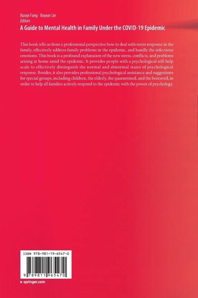 Part 1 Stress response caused by the epidemic.- 1. Stress response and its symptoms.- 2. Stages of stress response.- 3. Self-assessment of stress response.- Part 2: Self-help approaches to stress response.- 1. Understand the novel coronavirus and reduce panic.- 2. Protect yourself from panic.- 3. Restore life and eliminate panic.- 4. Accept your emotions and relieve anxiety.- 5. Change cognition for positive thinking.- 6. Shift attention and focus on others.- 7. Seek professional help to cope with panic.- Part 3: Family coping methods for stress response.- 1. How to arrange home life reasonably.- 2. How to help children through special times.- 3. How to help families with stress response.- 4. How to help quarantined family members.- 5. How to deal with strong response of family members with mental disorders History.- 6. How to deal with the loss of loved ones.- 7. How to deal with family risks.- Part 4: How to deal with family conflicts caused by the epidemic.- 1. How to dealwith family conflicts.- 2. How to improve family relationships.