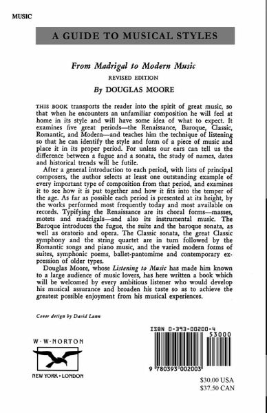 This book transports the reader into the spirit of great music, so that when he encounters an unfamiliar composition he will feel at home in its style and will have some idea of what to expect. It examines five great periods-the Renaissance, Baroque, Classic, Romantic, and Modern-and teaches him the technique of listening so that he can identify the style and form of a piece of music and place it in its proper period. For unless our ears can tell us the difference between a fugue and a sonata, the study of names, dates and historical trends will be futile.