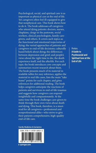 "Perkins states that there is no dichotomy between physical and nonphysical aspects in end-of-life care. He strongly stresses the need to recognize the role that nonphysical aspects of life and death play in contemporary society. ... the book focuses on daily clinical practice, its difficulties and dilemmas in relation to the patient's wishes and nonphysical requests, which medical science seems unable to explain clearly and truthfully." (Federico Nicoli, Theoretical Medicine and Bioethics, October, 1, 2019)