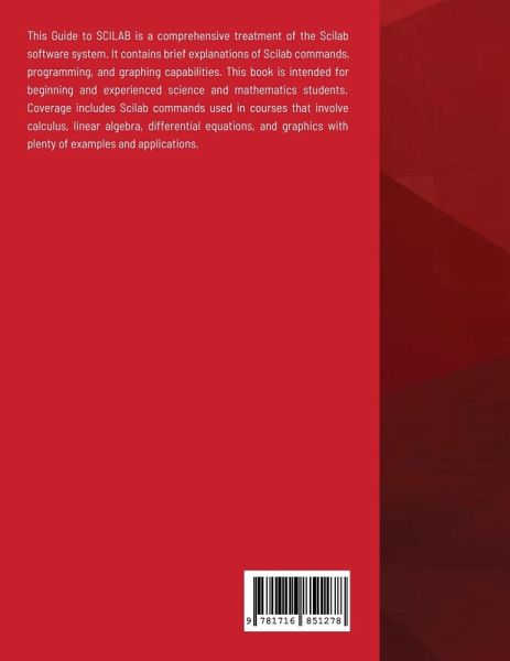This Guide to SCILAB is a comprehensive treatment of the Scilab software system. It contains brief explanations of Scilab commands, programming, and graphing capabilities. This book is intended for beginning and experienced science and mathematics students. Coverage includes Scilab commands used in courses that involve calculus, linear algebra, differential equations, and graphics with plenty of examples and applications.